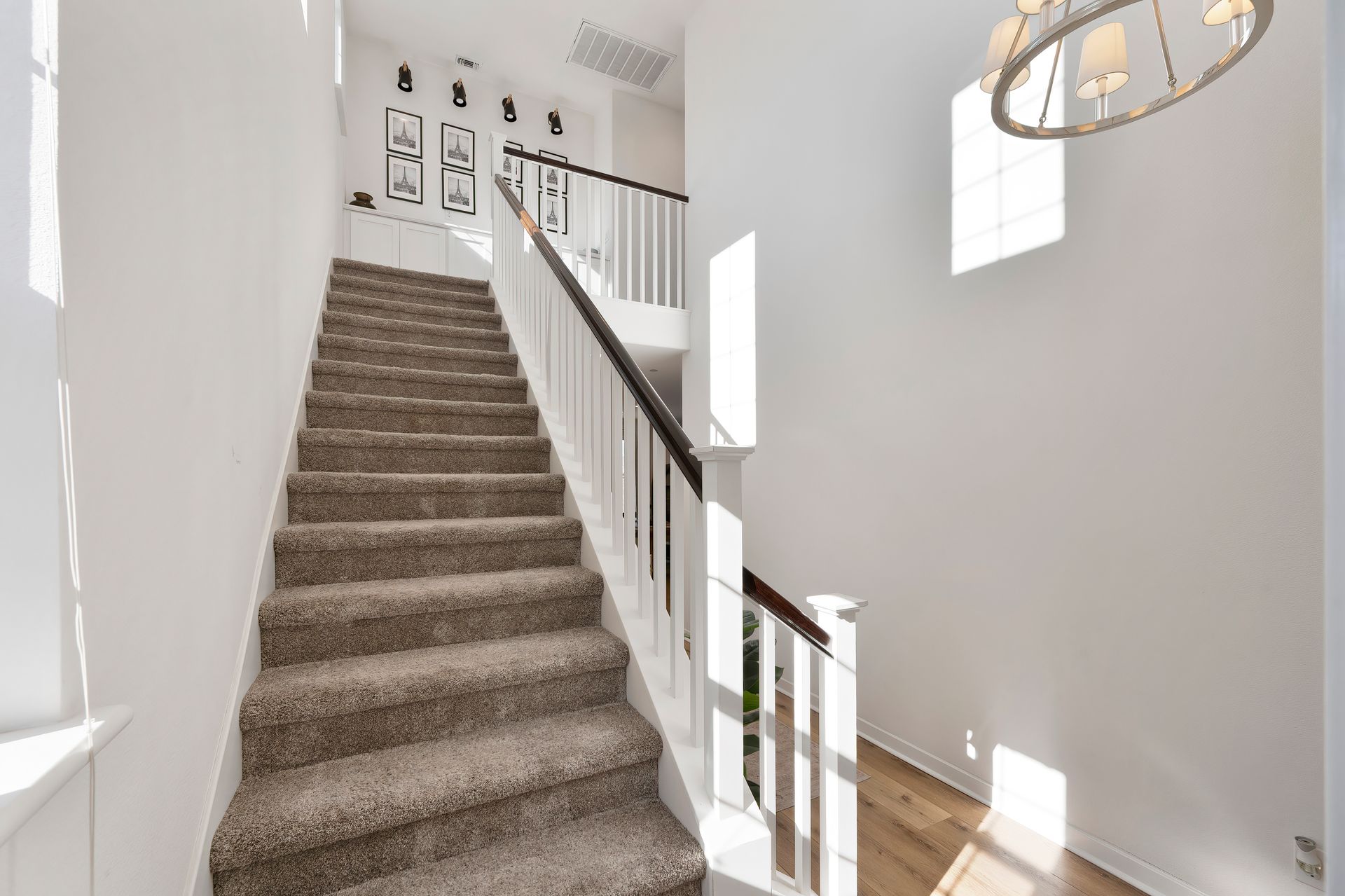 Open stair rail leads to a loft/office/potential 4 th bedroom.