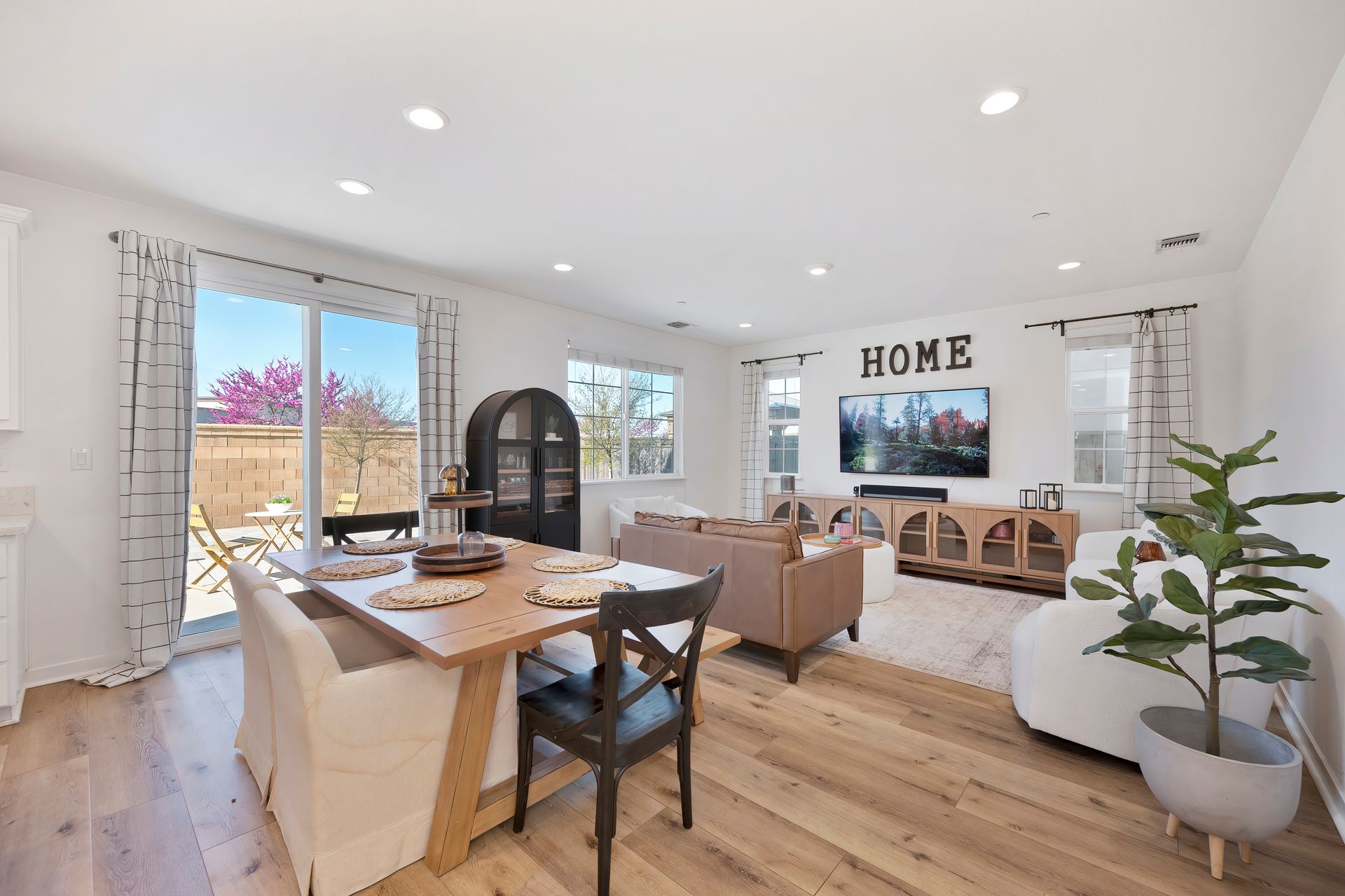 Great room concept with a dining area, large gathering area, and a stunning kitchen.
