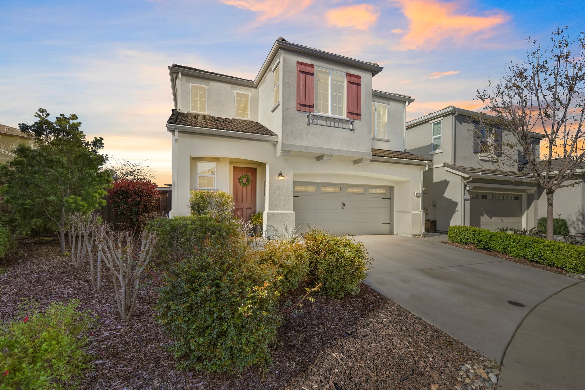 Beautiful curb appeal with a mediterranean style elevation with shutters and HOA maintained landscaping.