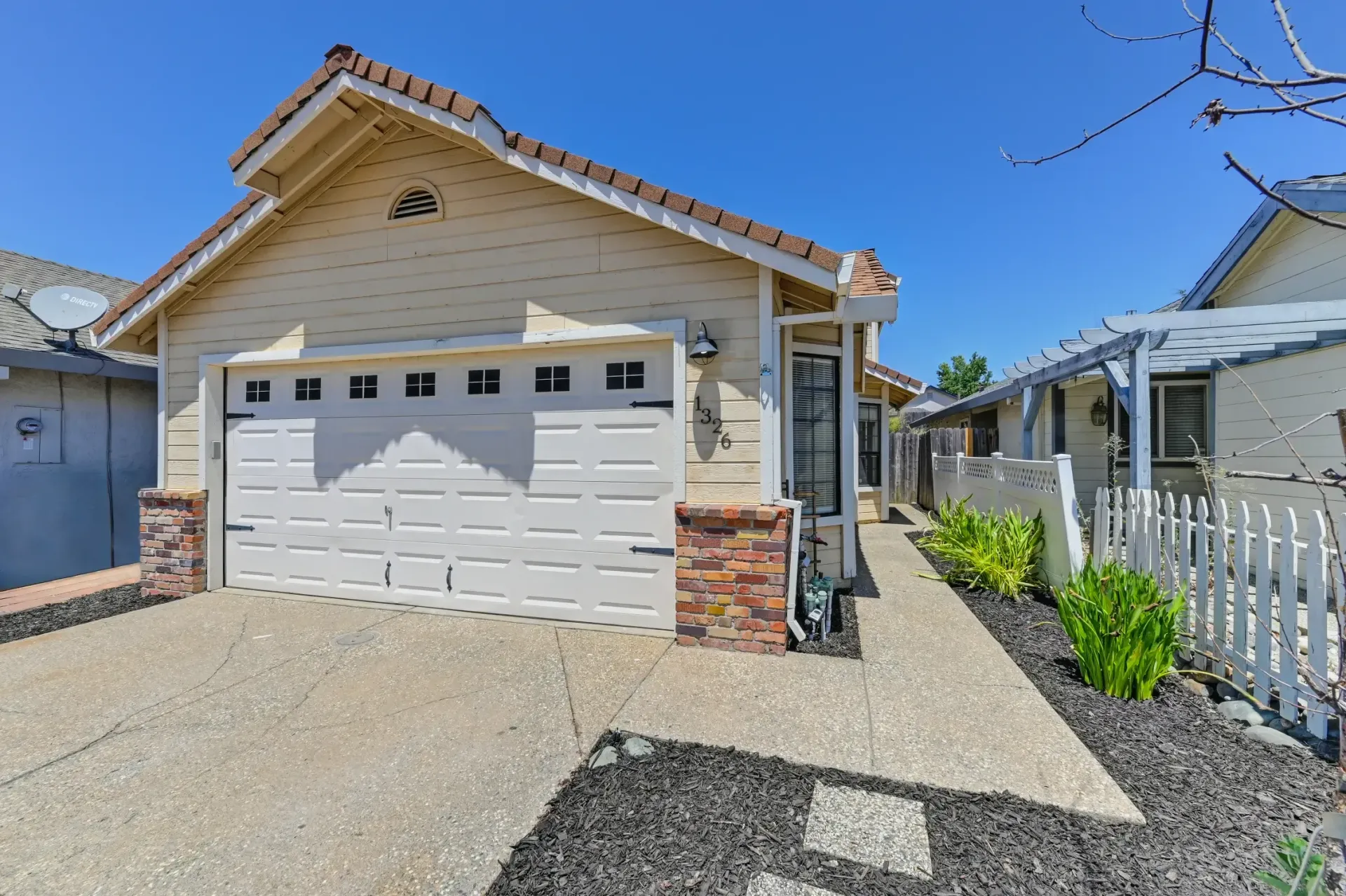 Curb appeal with brick accent, siding, and low maintenance landscaping.