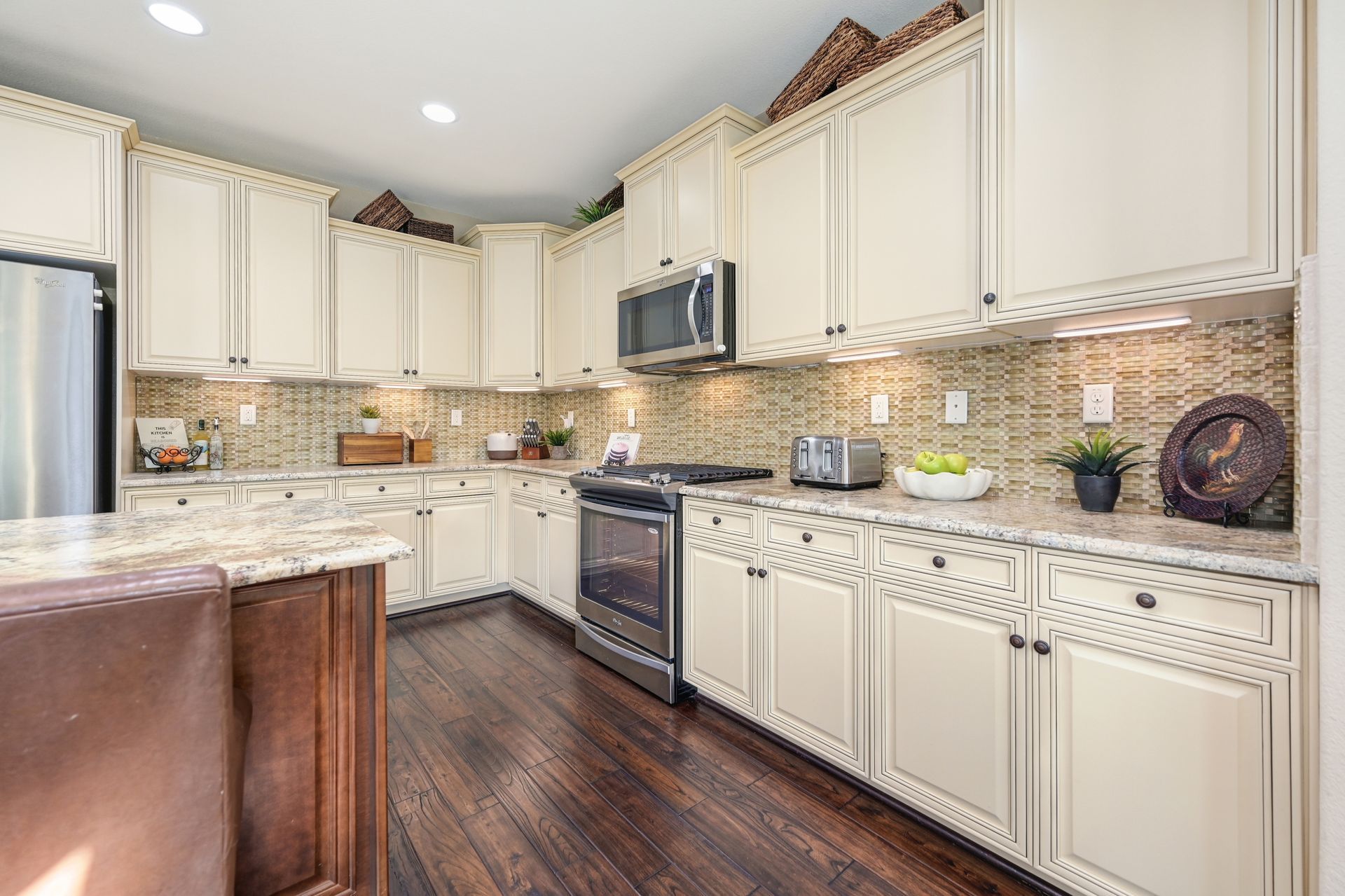 Engineered hardwood flooring, upgraded carpet, and tile flooring throughout. 5 ¼” baseboards, plantation shutters, wainscoting, beautiful millwork, and recessed lighting.