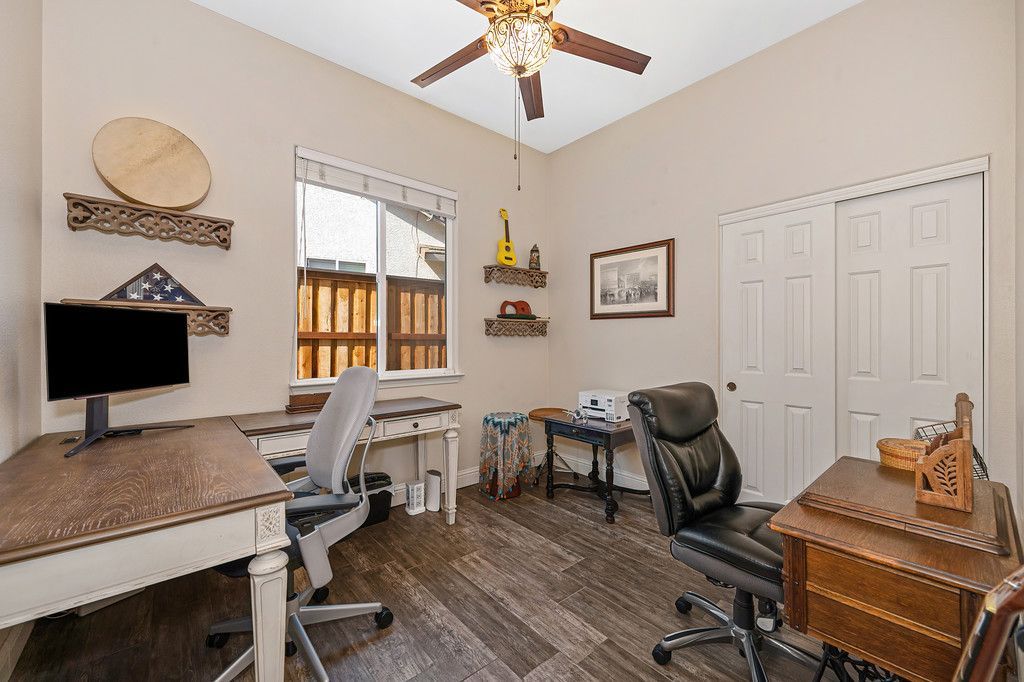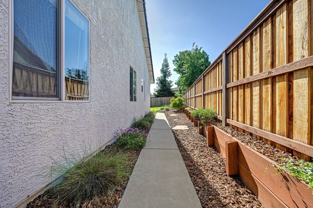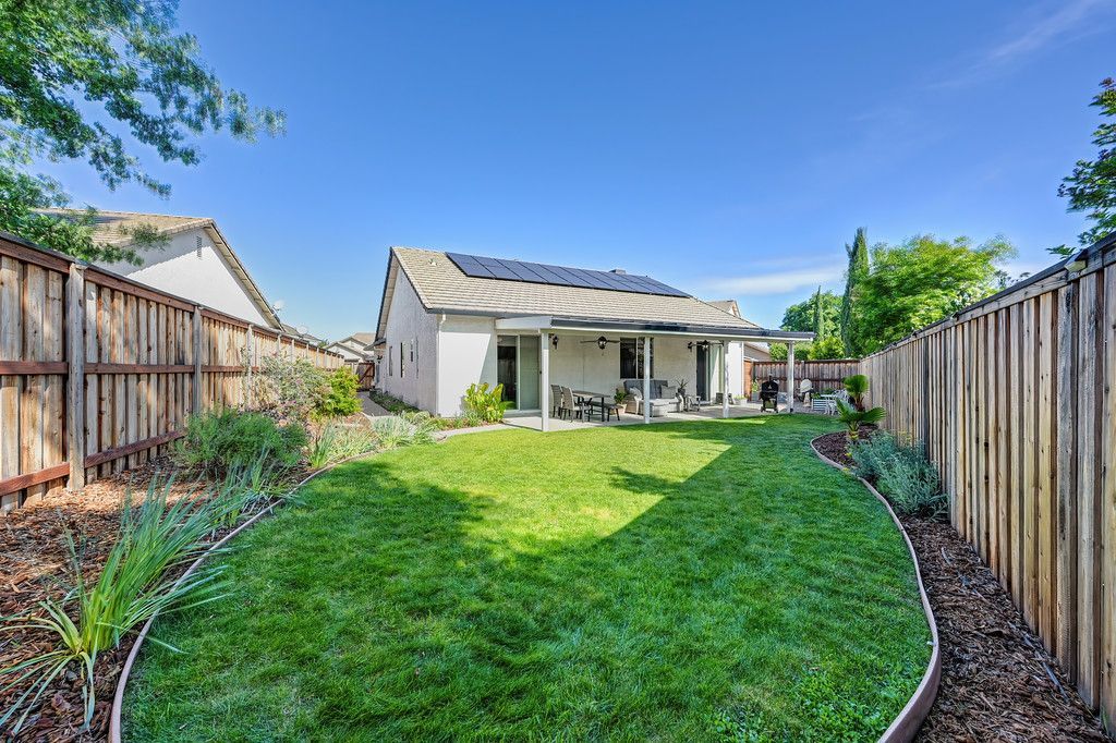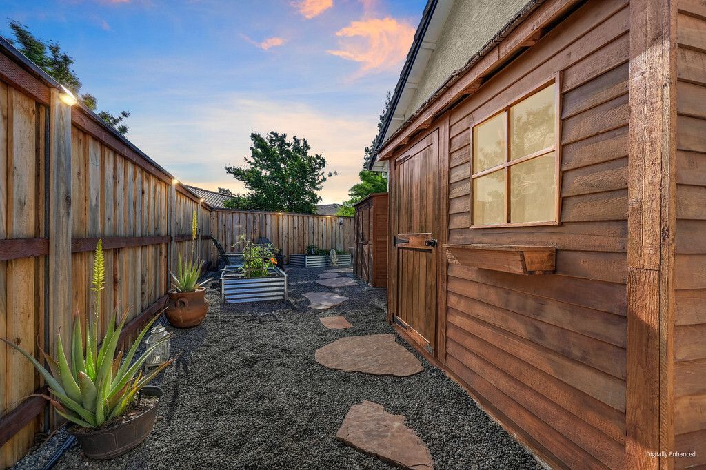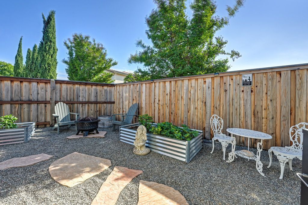 The private, expansive, pool-sized backyard is an entertainer’s paradise with a massive covered patio with two ceiling fans, garden boxes with drip irrigation, fig and pomegranate trees, and a newer, top-of-the-line fence featuring a redwood face with wood rails and caps, supported by steel Postmaster posts set 3+ feet below grade.
