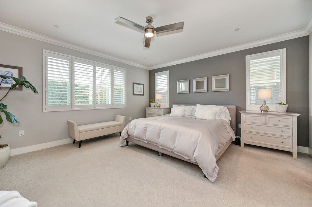 Plantation shutters, updated lighting, crown molding, 5 panel doors, 5 1/2” baseboards, 12” x 24” tile flooring, and upgraded Berber carpet throughout.