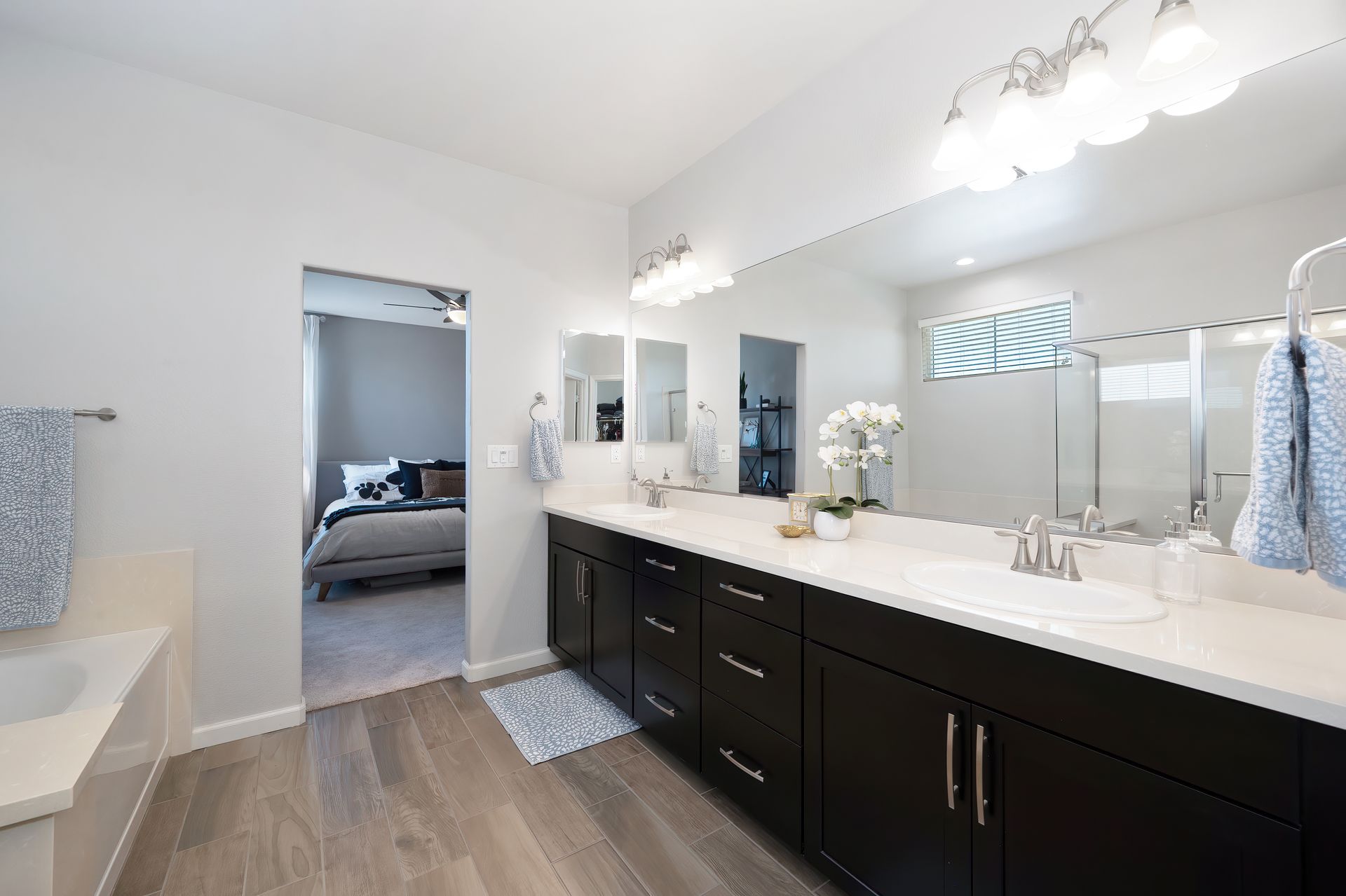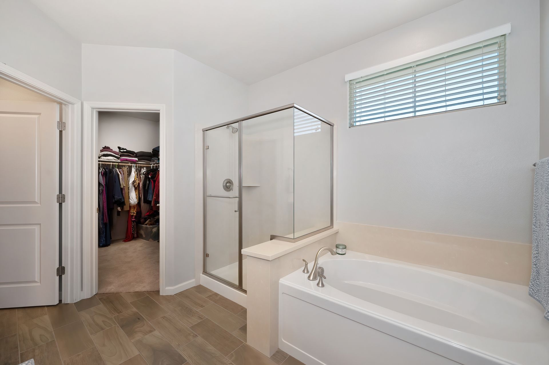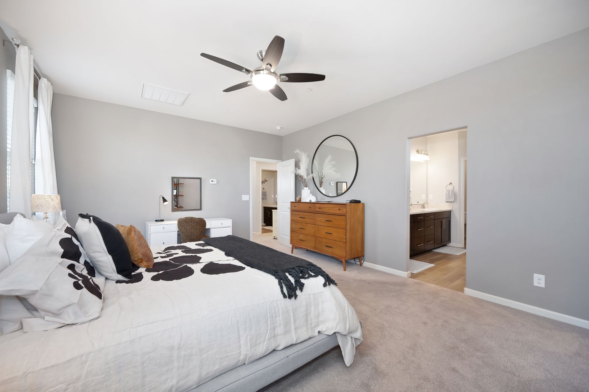 Private and spacious primary suite with abundant natural light, a walk-in closet, and views of the Sierras.