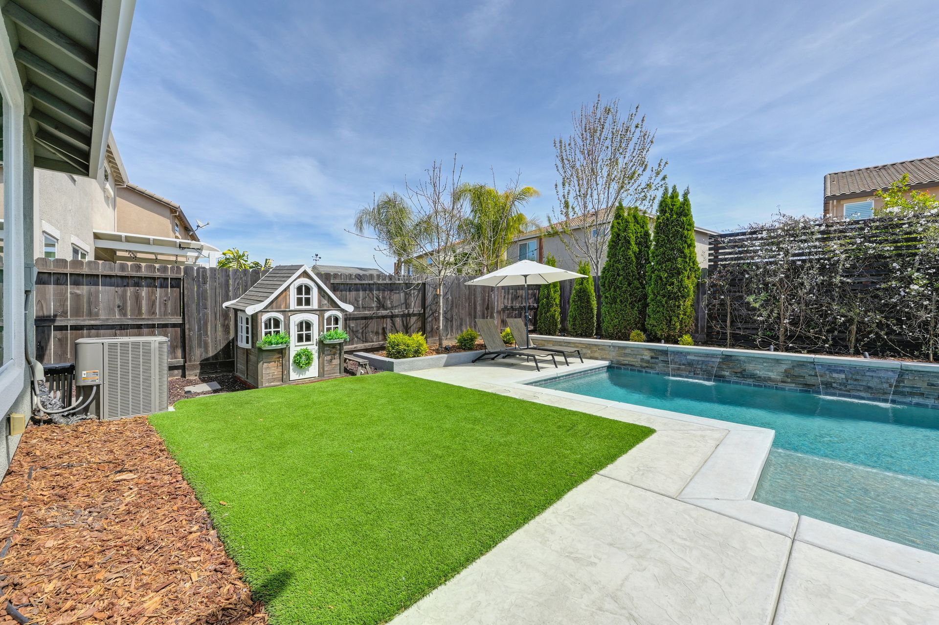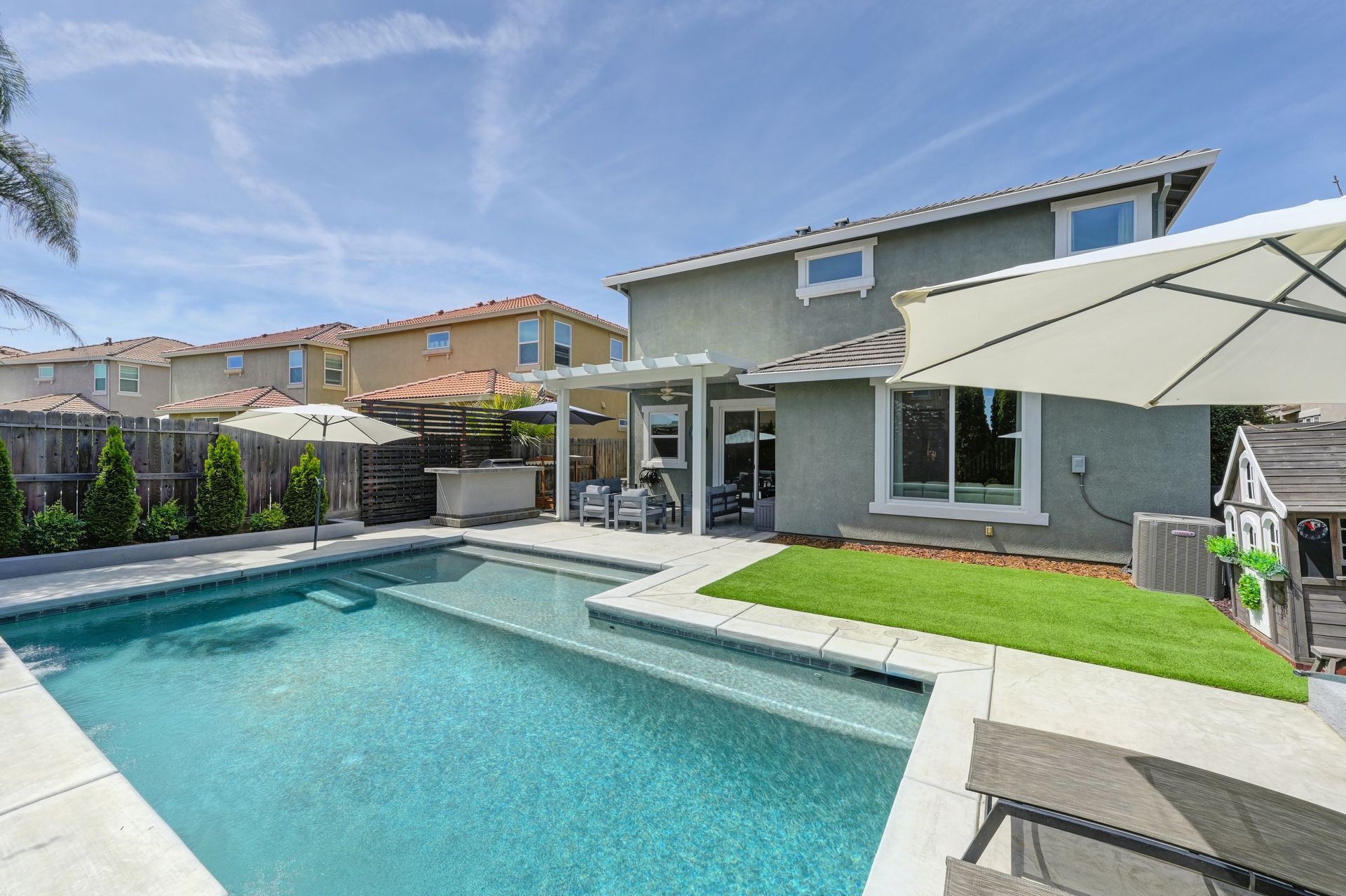 Nestled in the desirable West Park neighborhood in Roseville, this stunning, pristinely kept, better than new, modern farmhouse style home (Residence 1 at Primrose by Pulte) with over $125,000 in upgrades, a resort style backyard with a sparkling saltwater pool, an office/den (potential 5th bedroom), a tech desk area, and owned solar is a must see!