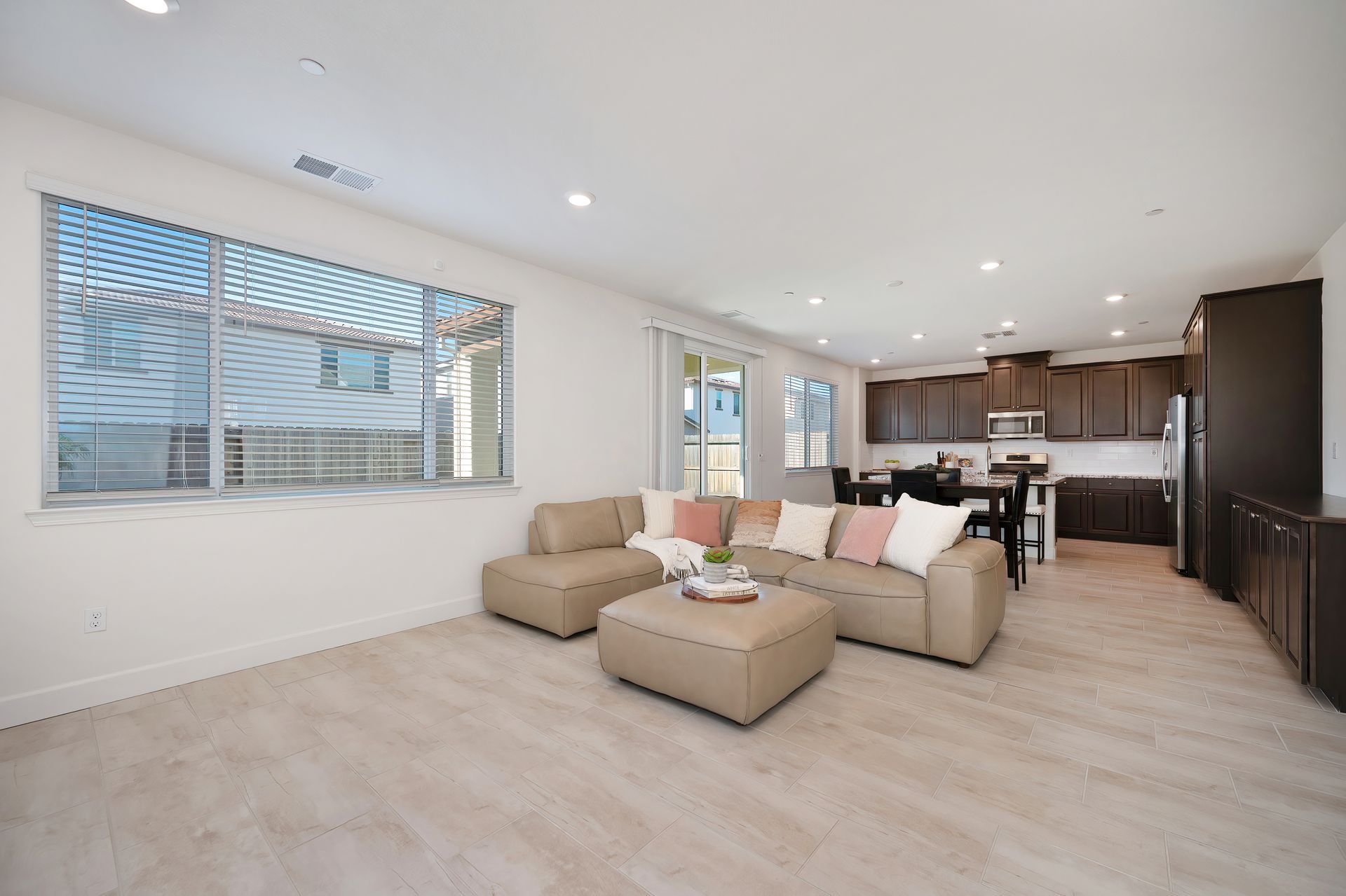 Great room concept with a large gathering area, dining area, and a stunning kitchen.