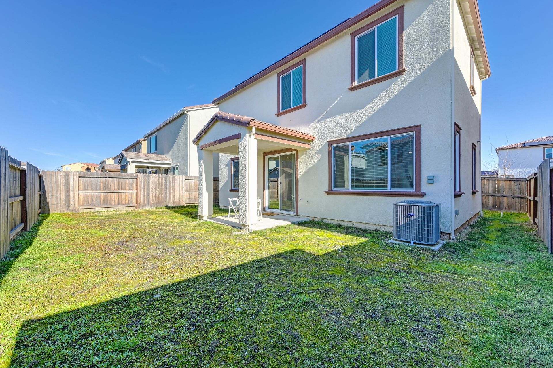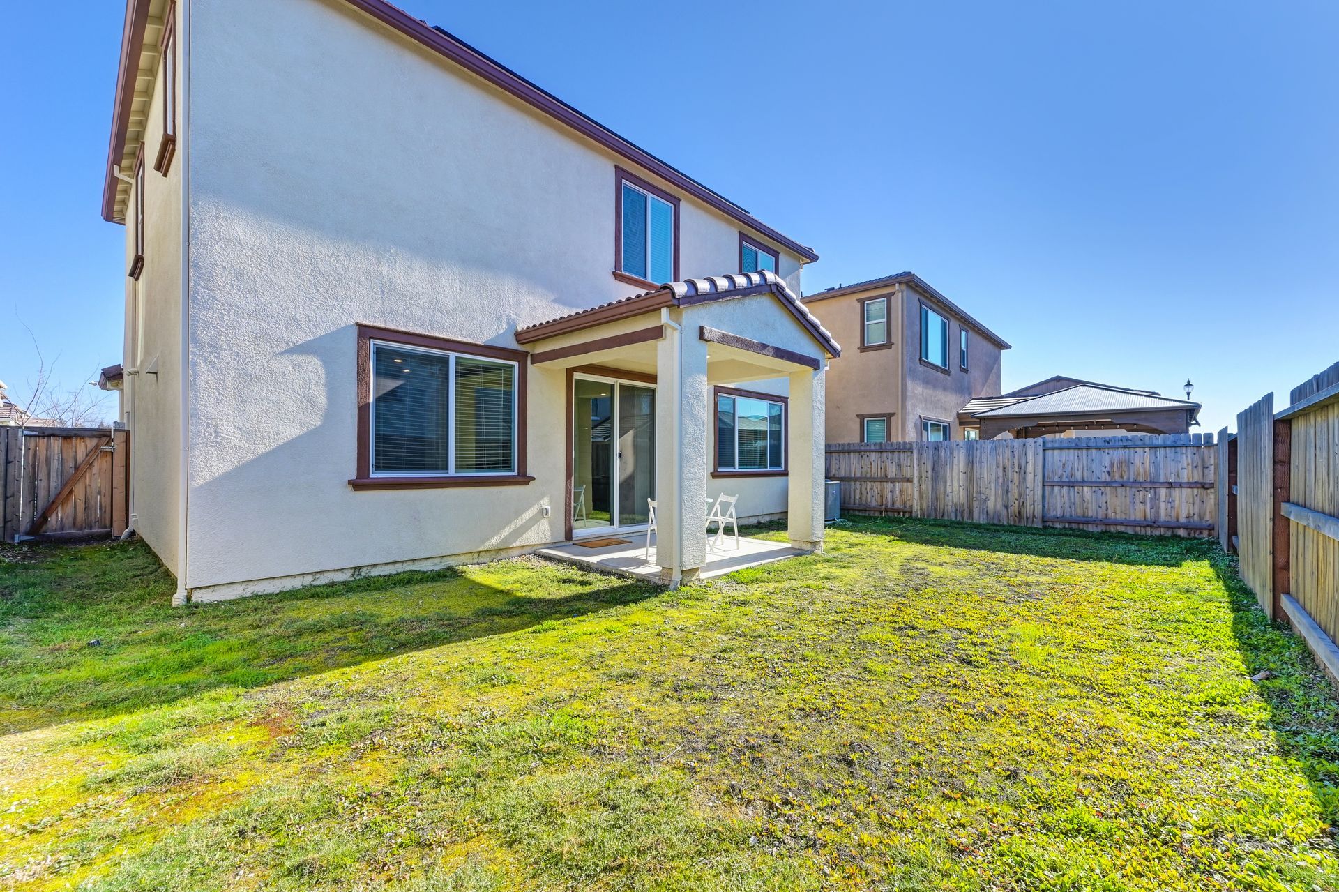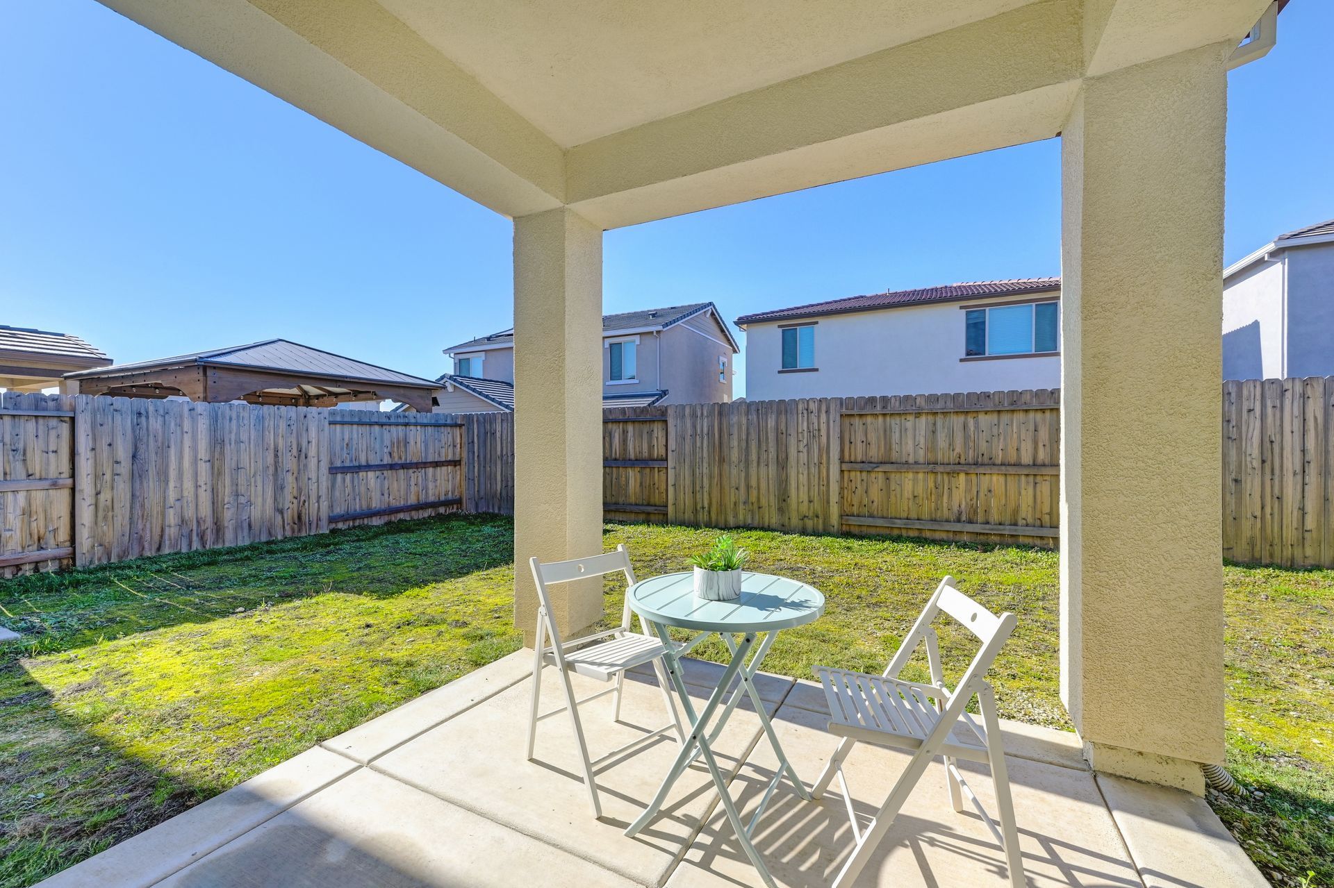 The possibilities are endless with the sizable backyard that features a covered patio with recessed lighting.