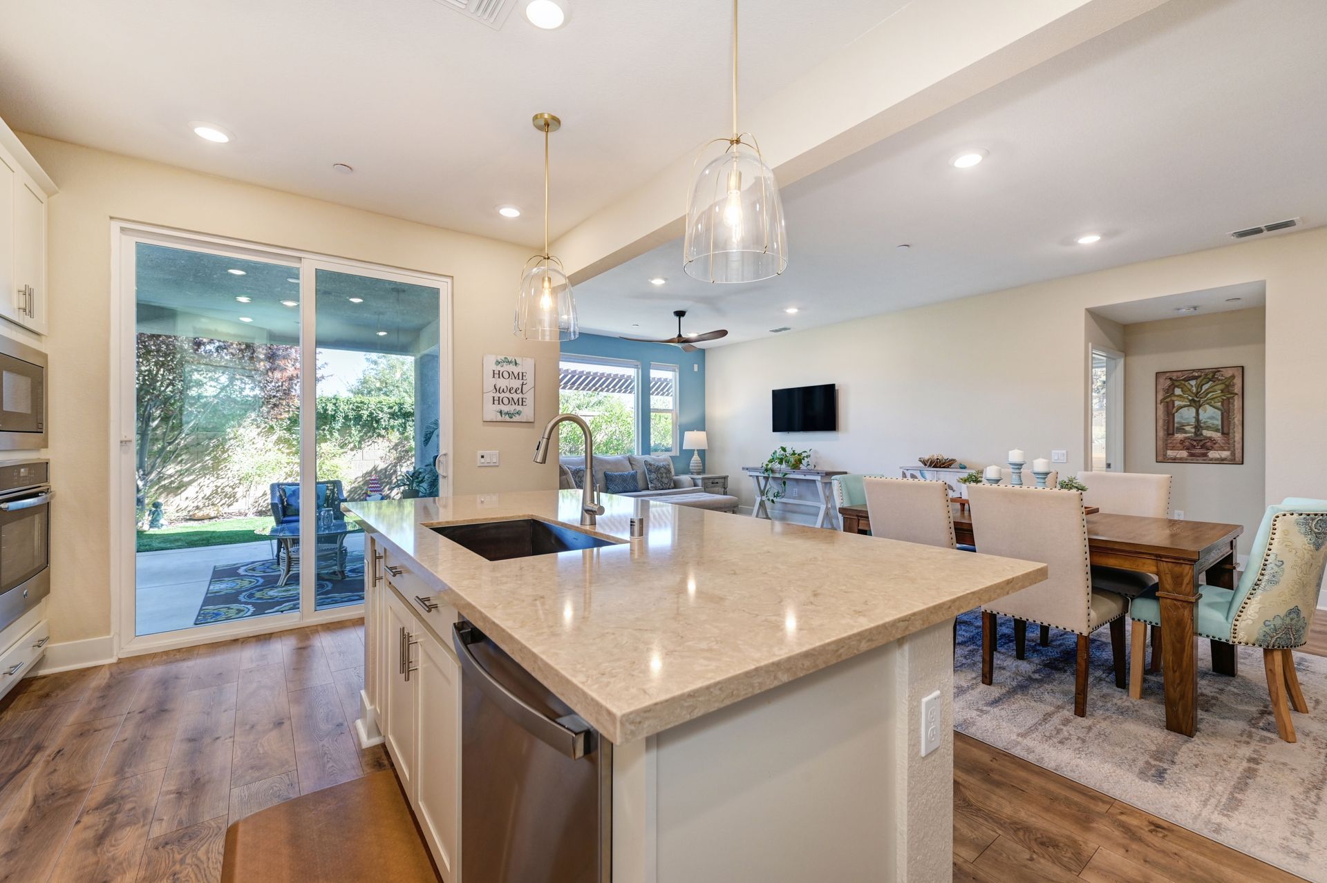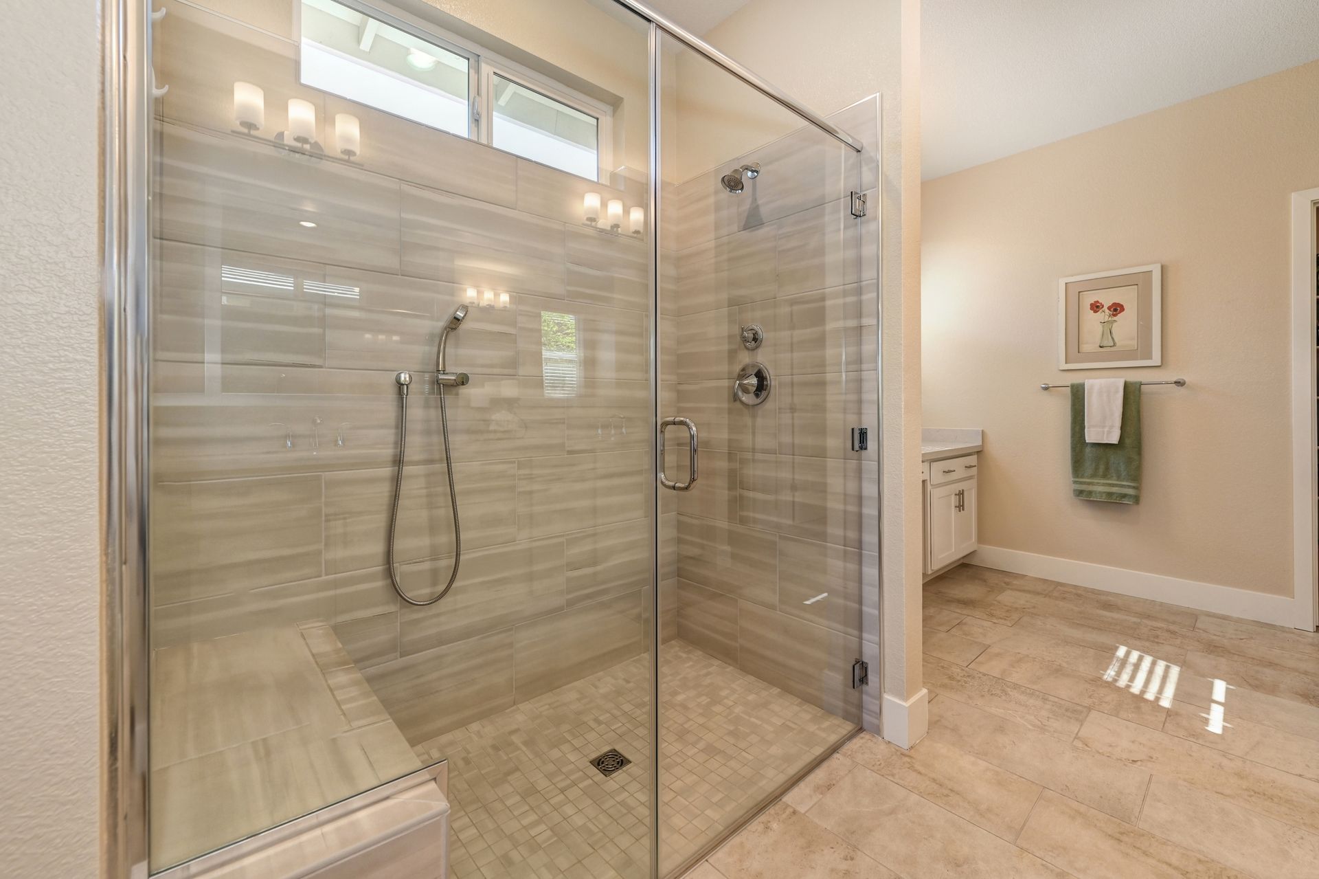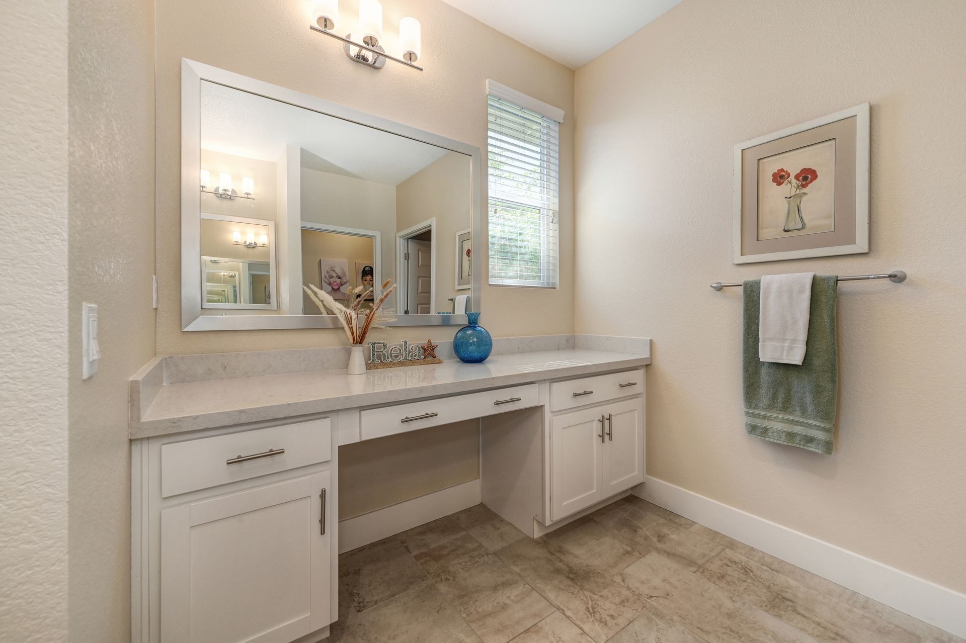 Nestled in Heritage Solaire, the gated 55+ active adult community in Roseville with amenities galore, this better than new, impeccably kept single story, (a former model home) with owned solar, an office/den with sliding doors, and two Jr. Suites with ensuite bathrooms is a must see!