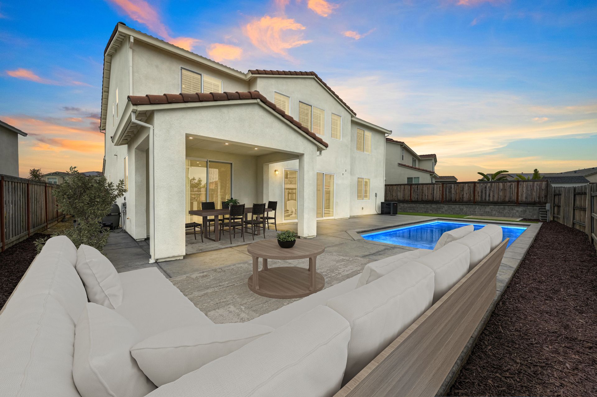 Situated in the rolling hills of desirable Folsom in the White Rock Springs Ranch neighborhood, this stunning, better than new home (built in 2022) with over $250,000 in upgrades and updates, owned solar, a large loft, a resort style backyard with a sparkling new pool, a downstairs bedroom and bathroom, a Jr. Suite, and a 3-car wide garage is a must see!
