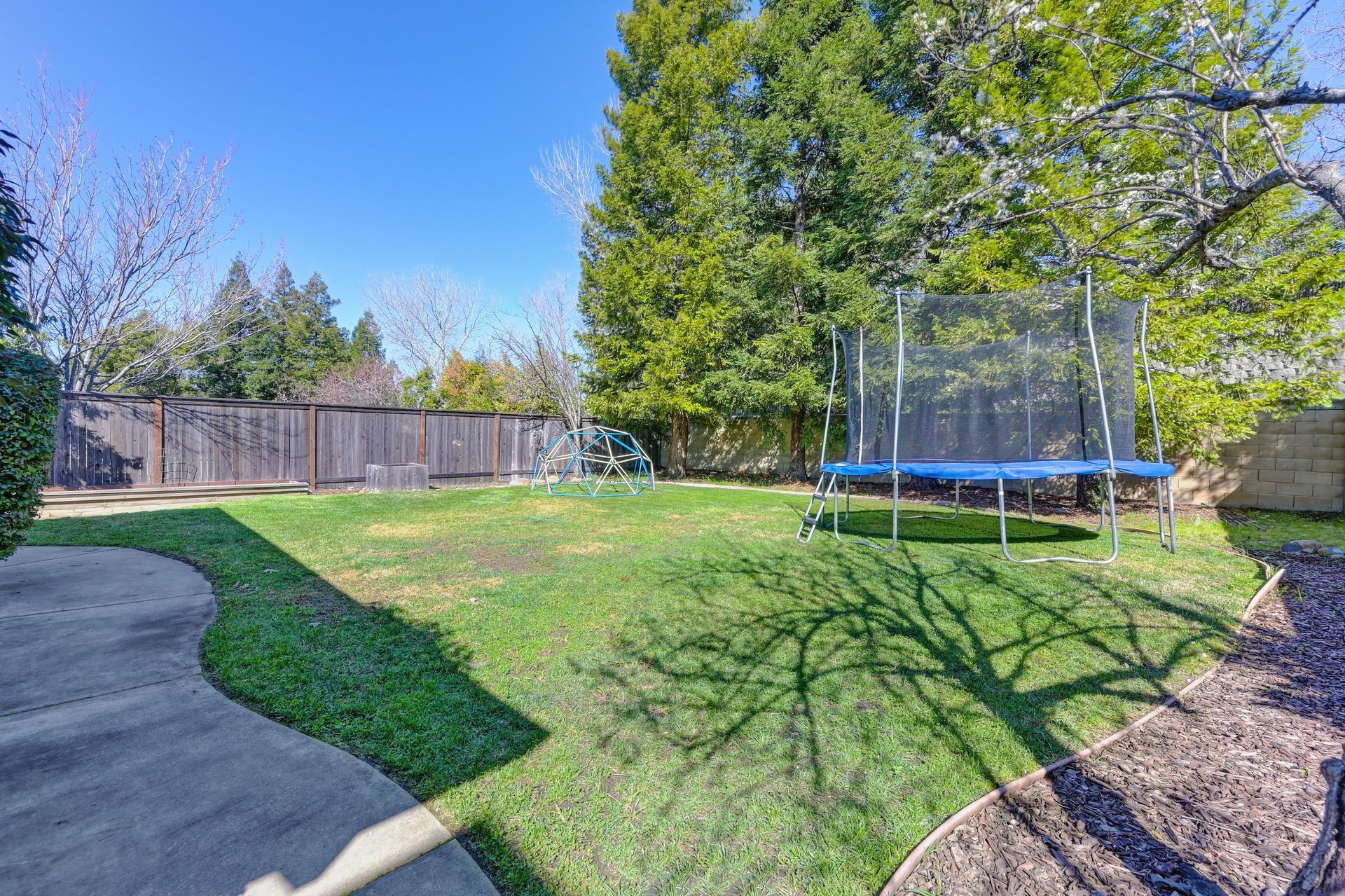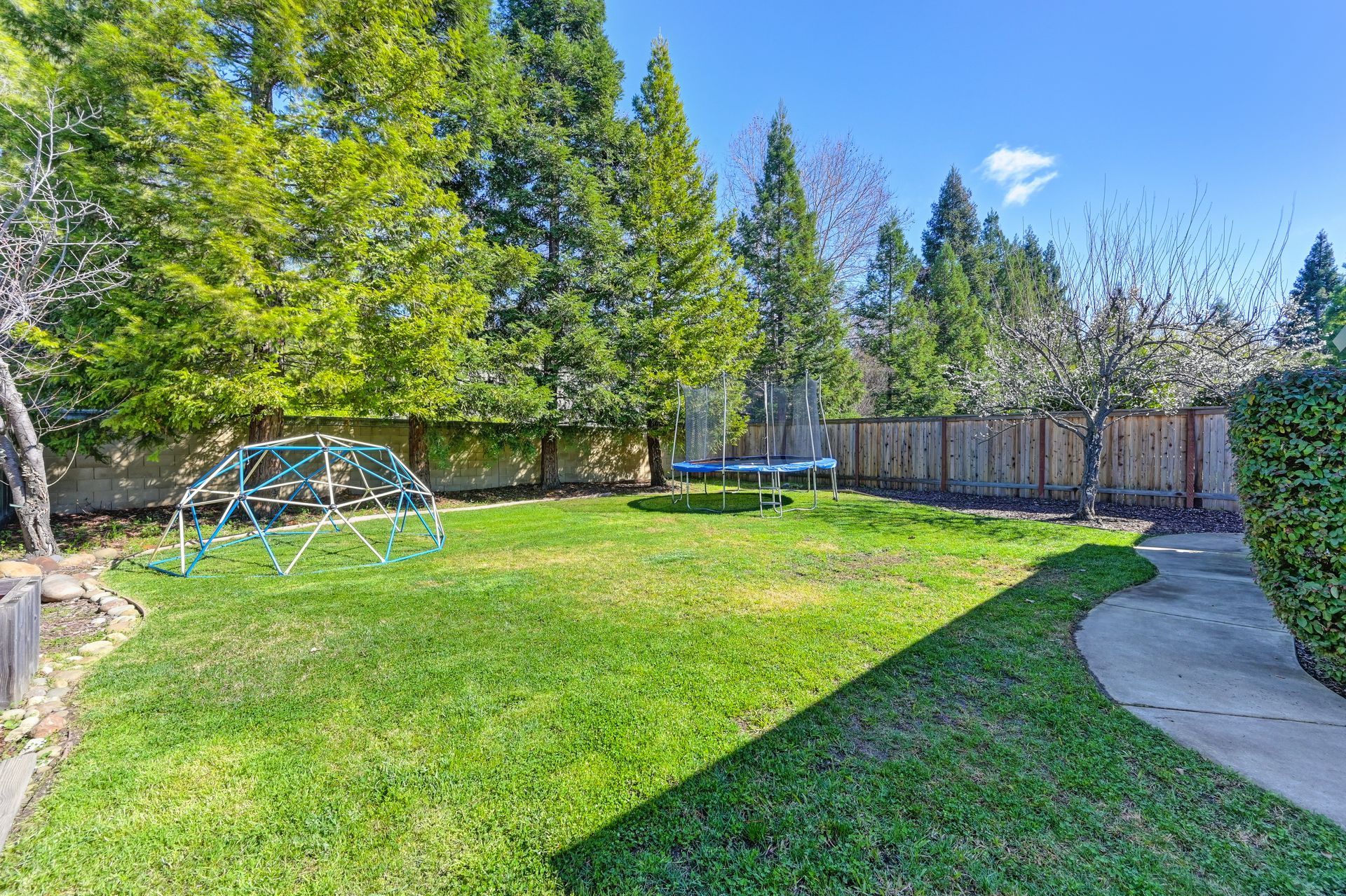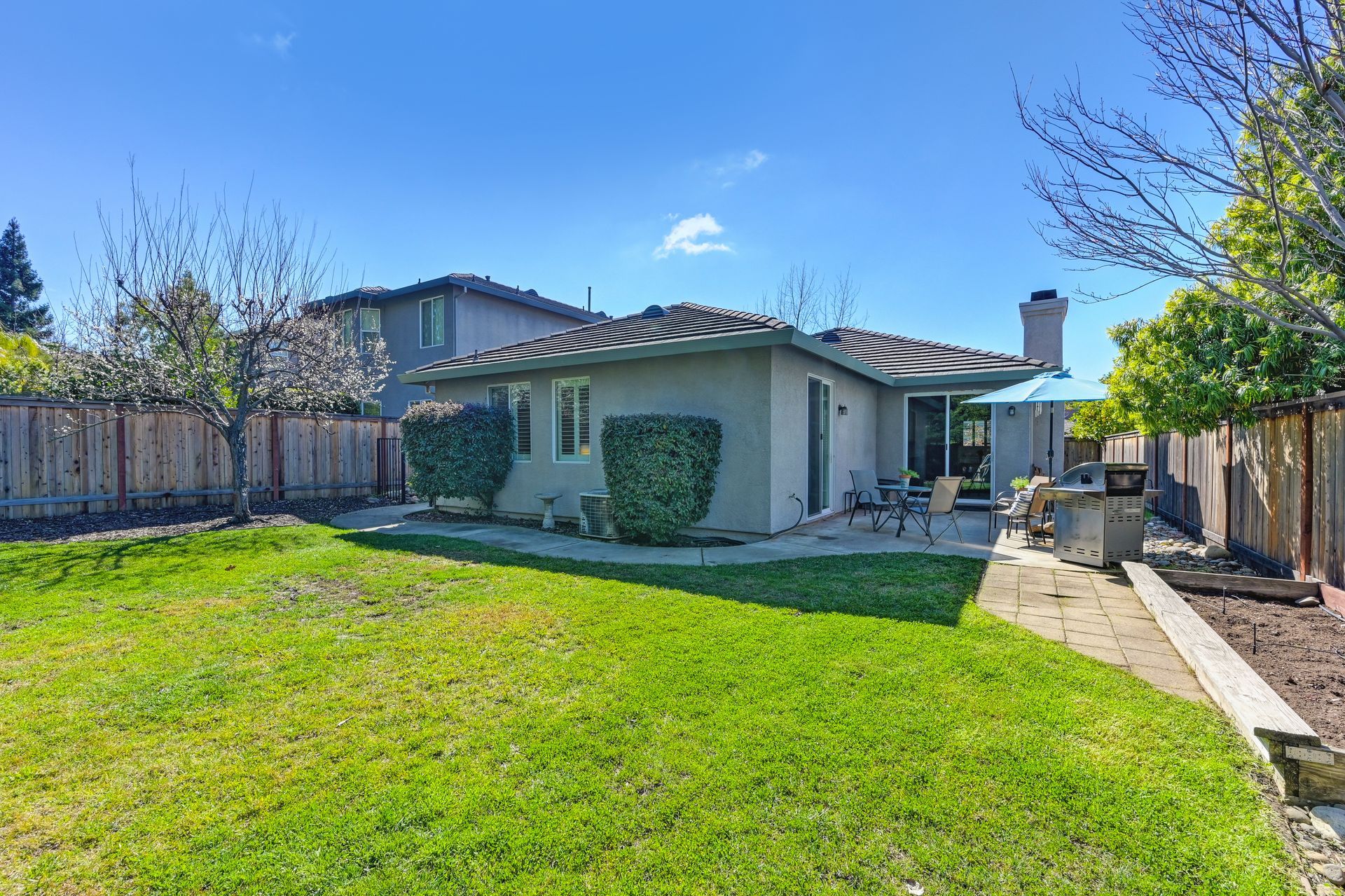 The possibilities are endless with the huge backyard with a patio for entertaining, large grassy area, garden boxes, a plum tree, a dog run, and mature trees for privacy.