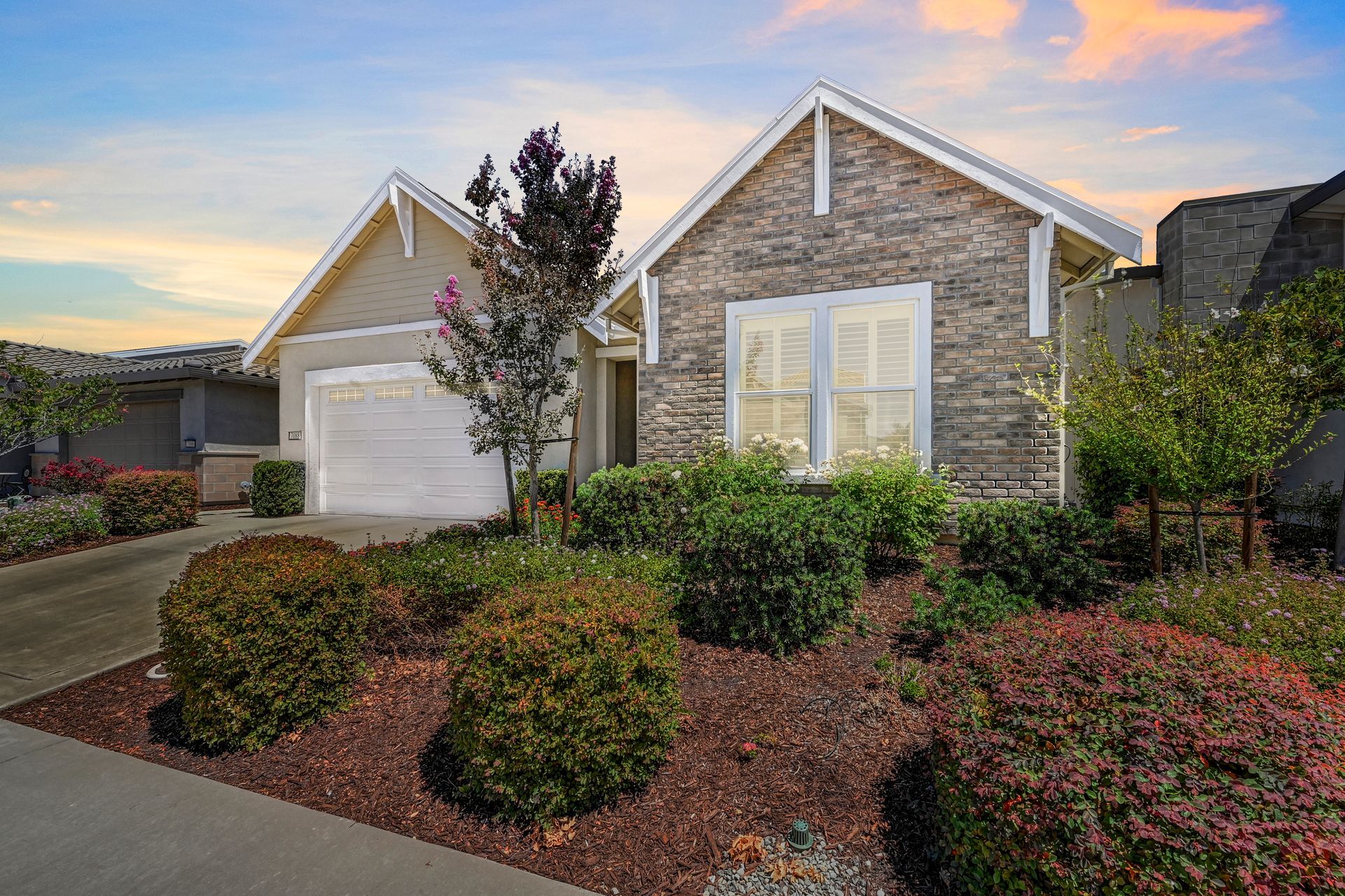 From the moment you arrive, you’ll be captivated by the home’s charming curb appeal, with brick accents, a windowed garage door, covered front porch, Clear View retractable screen door, camera doorbell, and HOA maintained front yard landscaping.