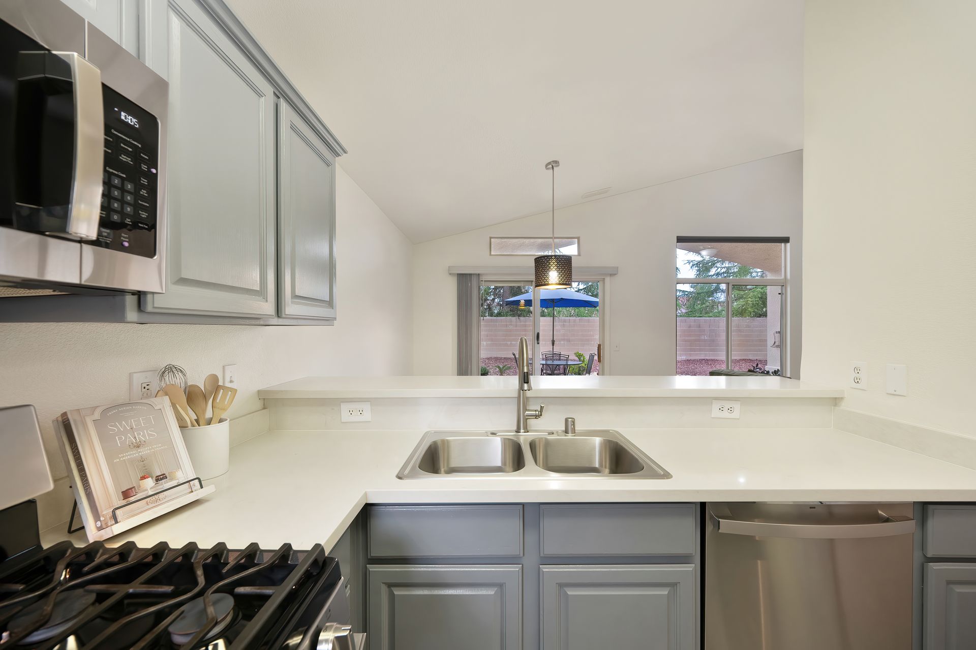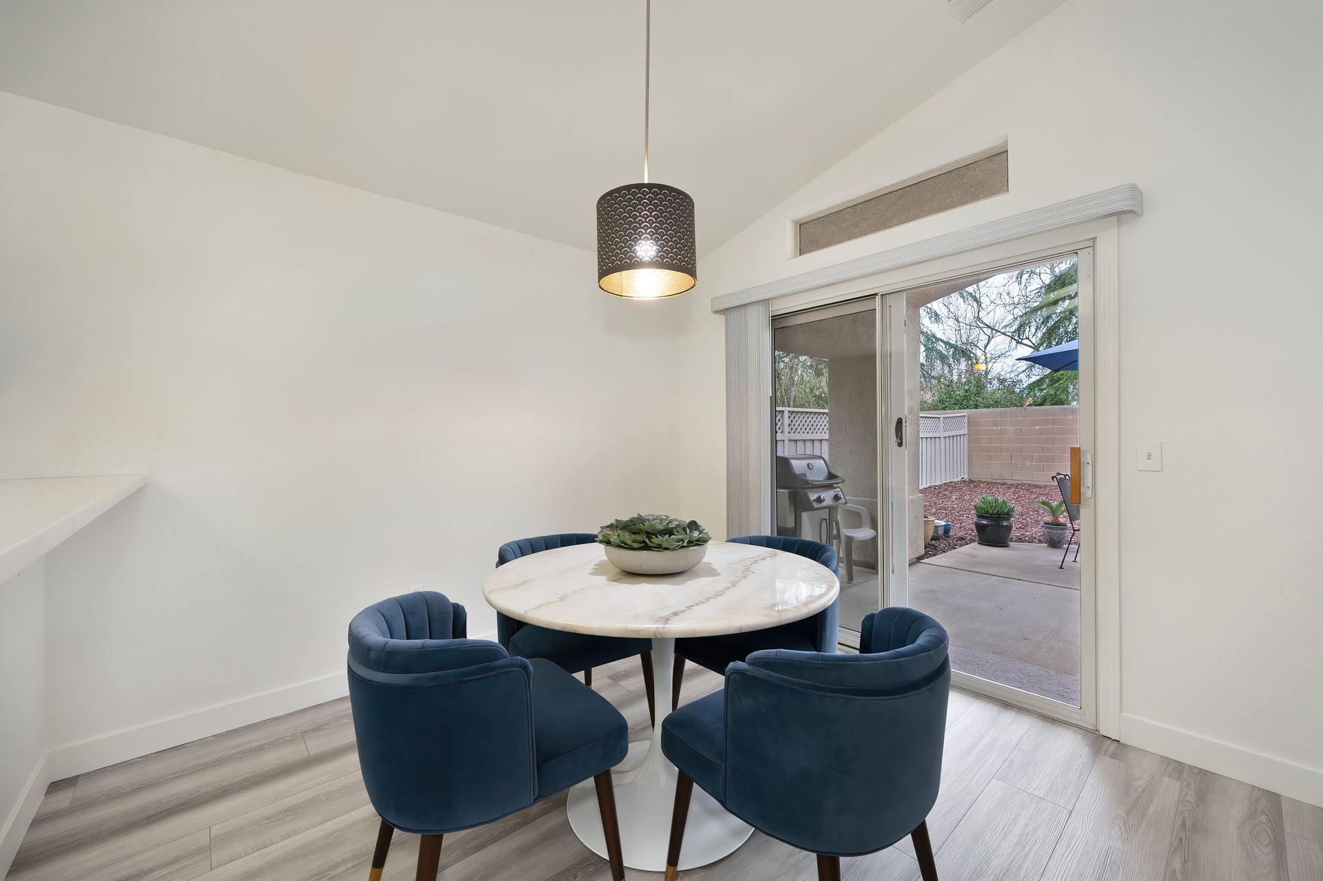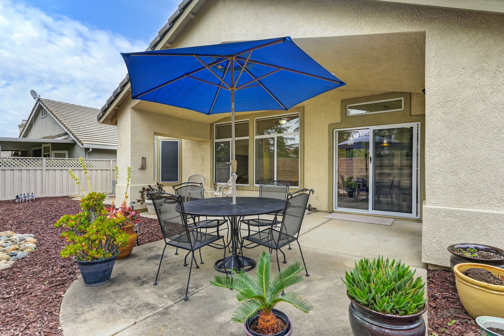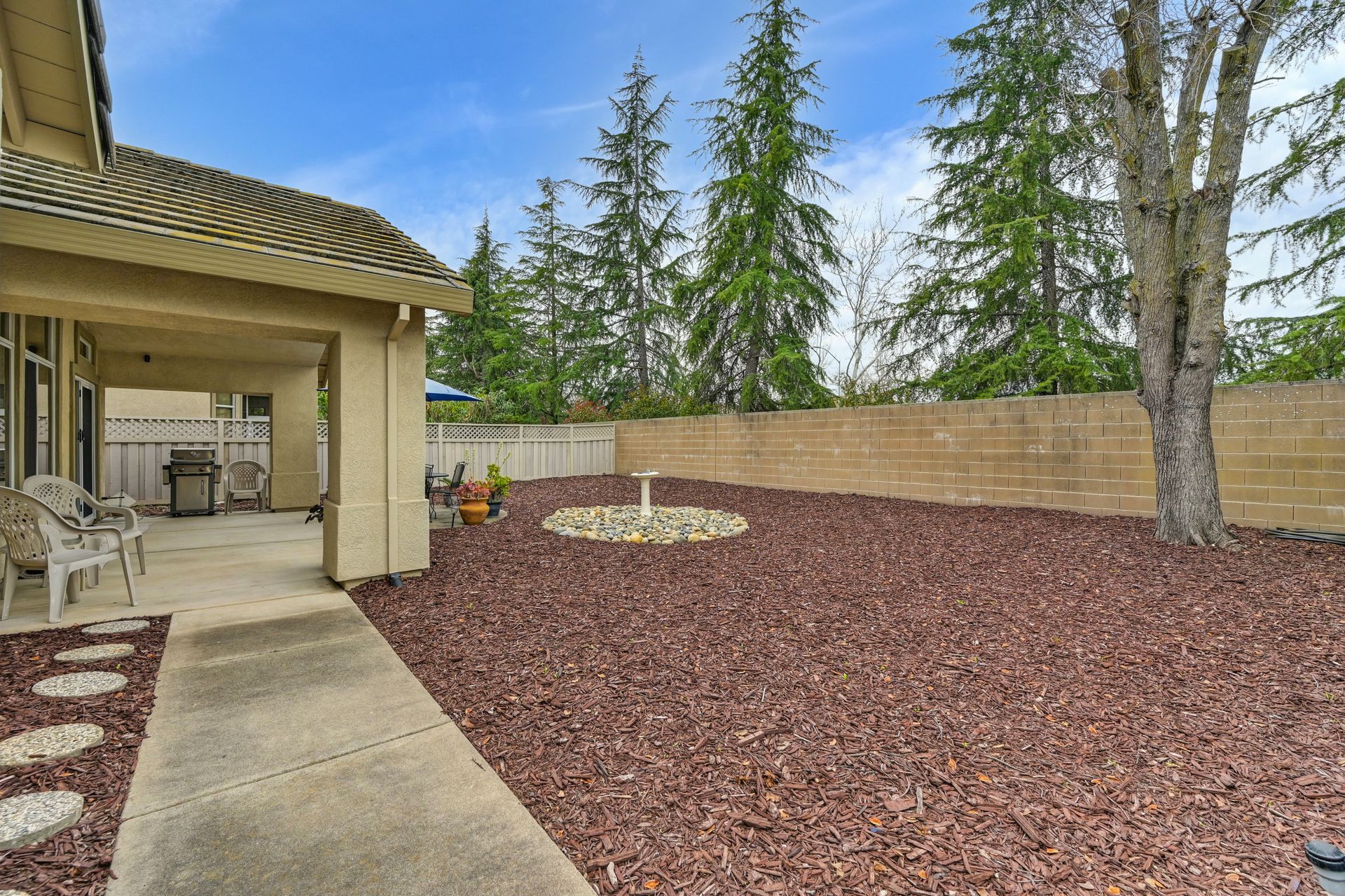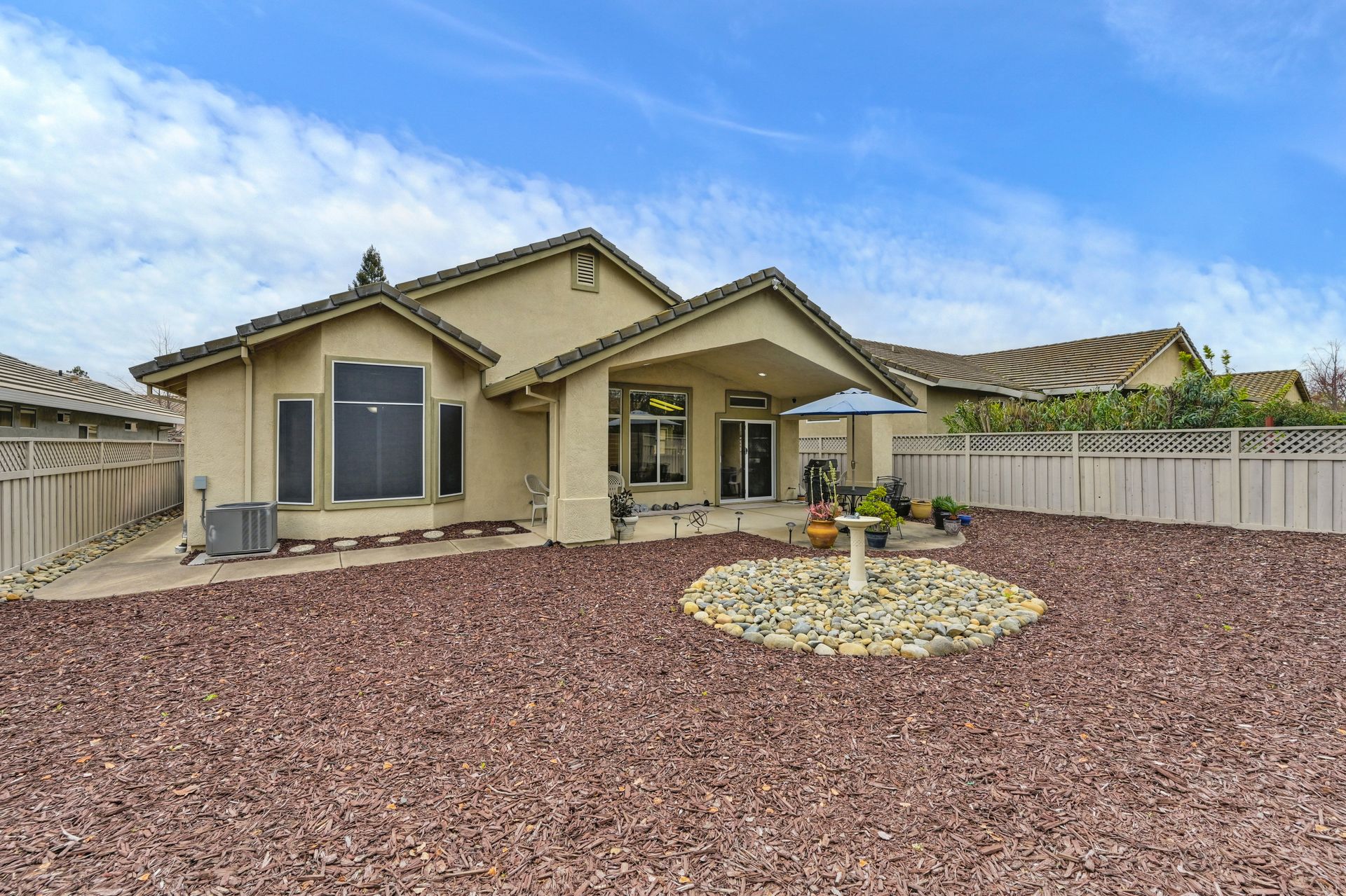 Entertain in the landscaped backyard with a large covered patio, low maintenance landscaping, new fencing, and a natural gas line for a BBQ.