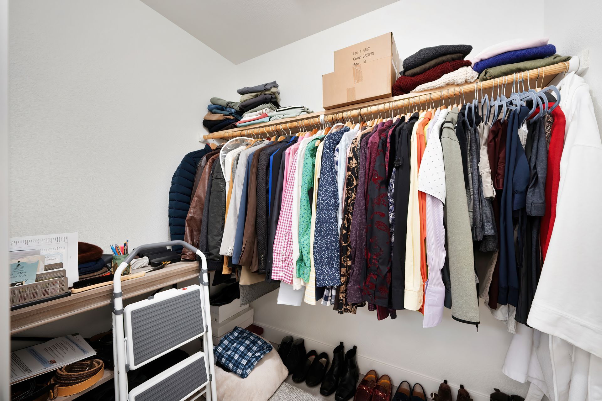Coat closet and linen cabinet.