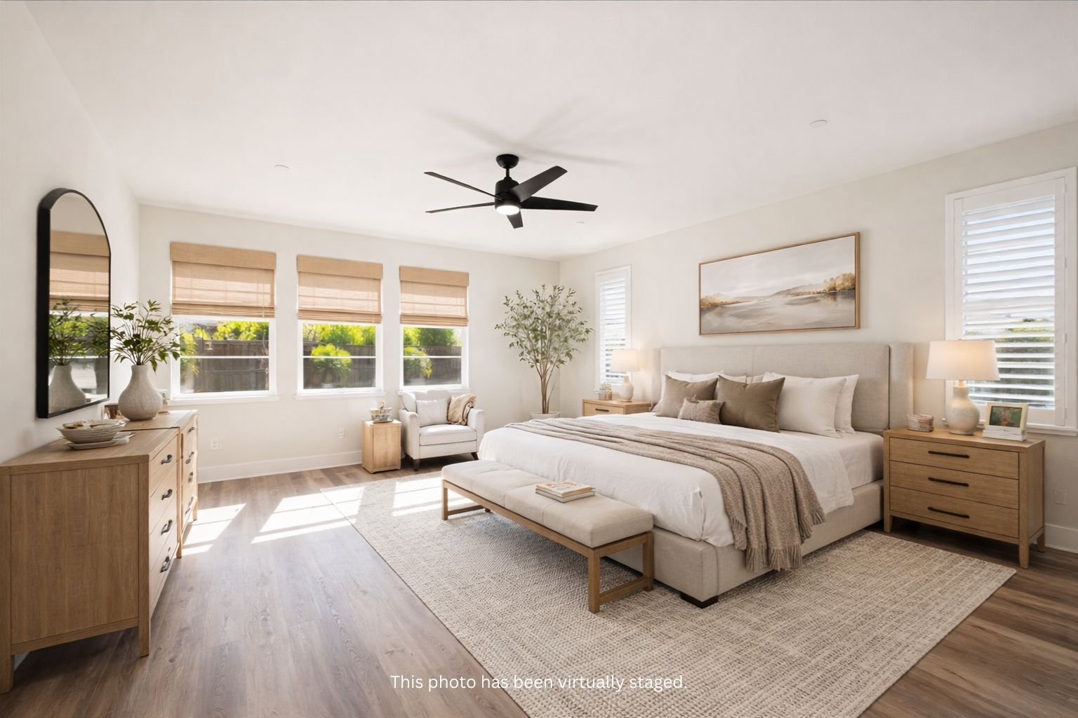Charming curb appeal with an extended driveway, artificial grass, walkway, custom iron gate with keyless entry, and a Ring camera doorbell. Upgraded flooring (including Luxury Vinyl Plank, carpet and tile), custom interior paint, upgraded lighting, recessed lighting, upgraded hardware, upgraded window treatments (including Hunter Douglas shutters, Hunter Douglas woven shades, Pottery Barn curtains, and blackout curtains on all bedrooms, five panel interior doors, 5 1/2” baseboards, and bullnose wall corners.