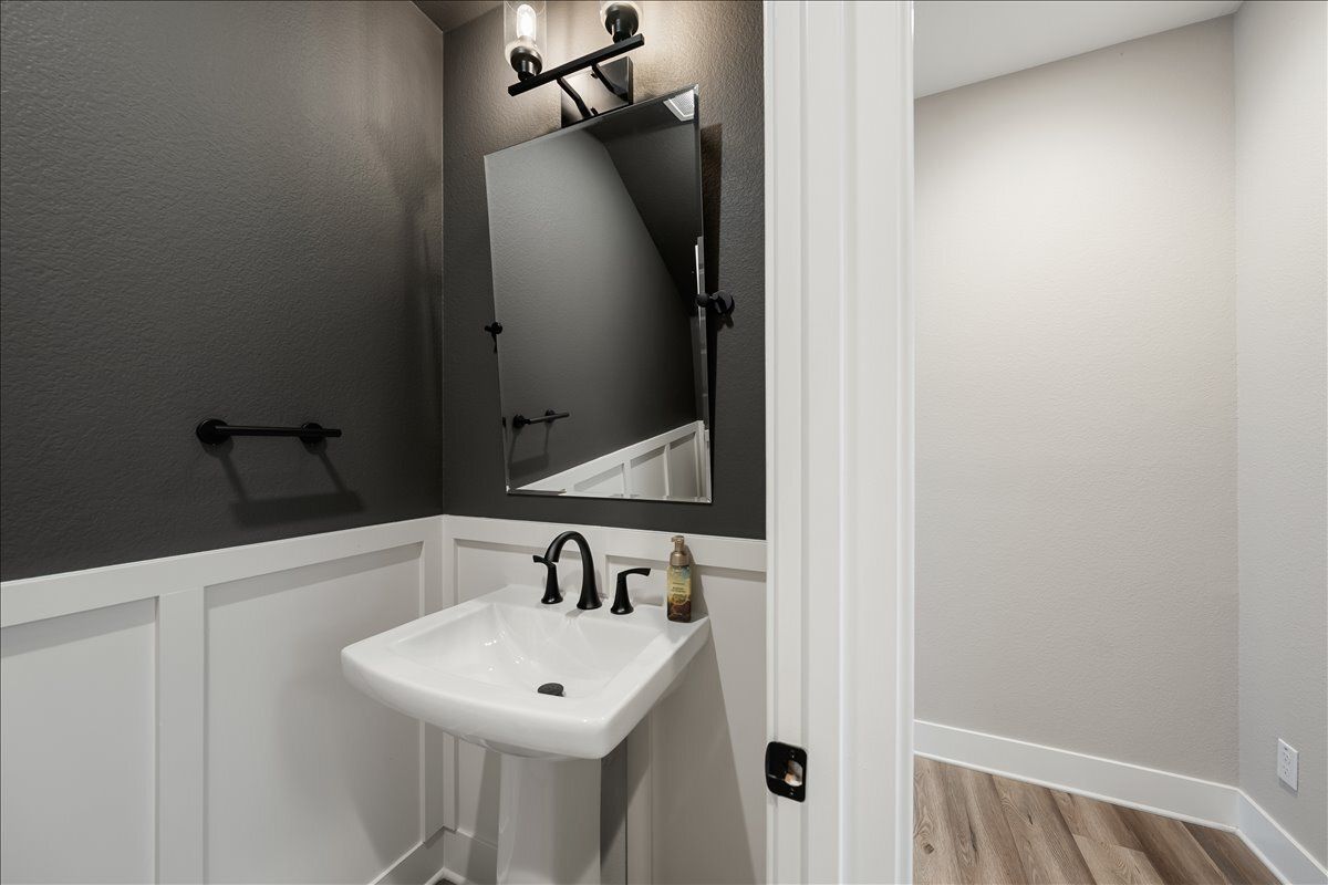 Updated powder room for guests with beautiful millwork.