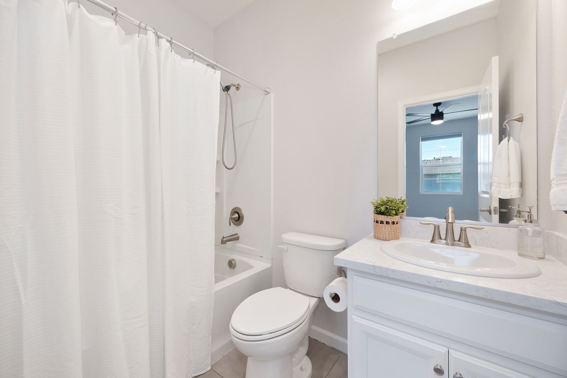 Jr. Suite with closet organizers and its own bathroom with a tub/shower combo.
