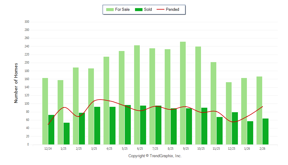 It was a Seller's Market Property Sales (Sold): February property sales were 64, down 17.9% from 78 in February of 2025 and 10.3% higher than the 58 sales last month.