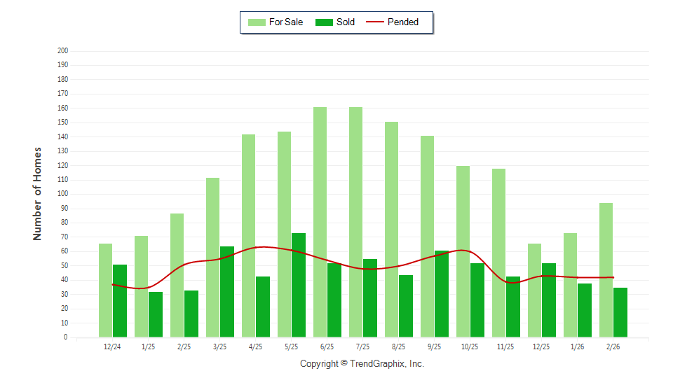 Property Sales (Sold): February property sales were 35, up 6.1% from 33 in February of 2025 and 7.9% lower than the 38 sales last month.