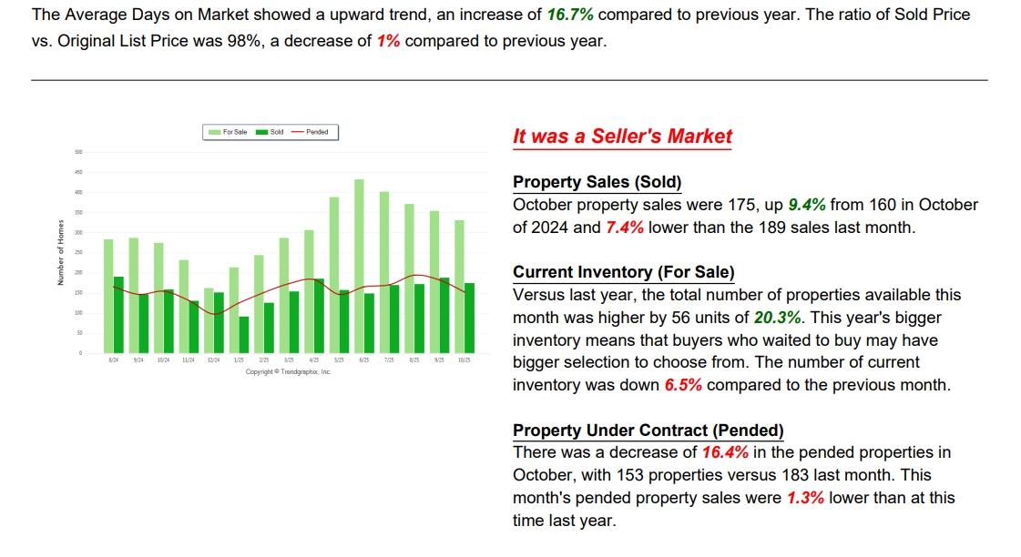Inventory was down for the fourth straight month coming off of the Summer highs (which were the highest in many, many years) while Days on Market have risen near 15th month highs (not uncommon during this time of year).